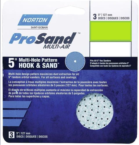 Sanding Disc, Multi-Air, Hook & Loop, 5" x 120 Grit, 3/pkg, Norton