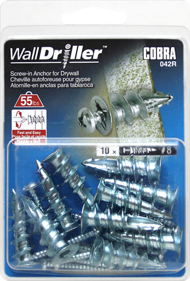 The WallDriller® is designed to offer the maximum holding power in drywall material. Its fine centered point helps guide the anchor into the wall with flawless precision.