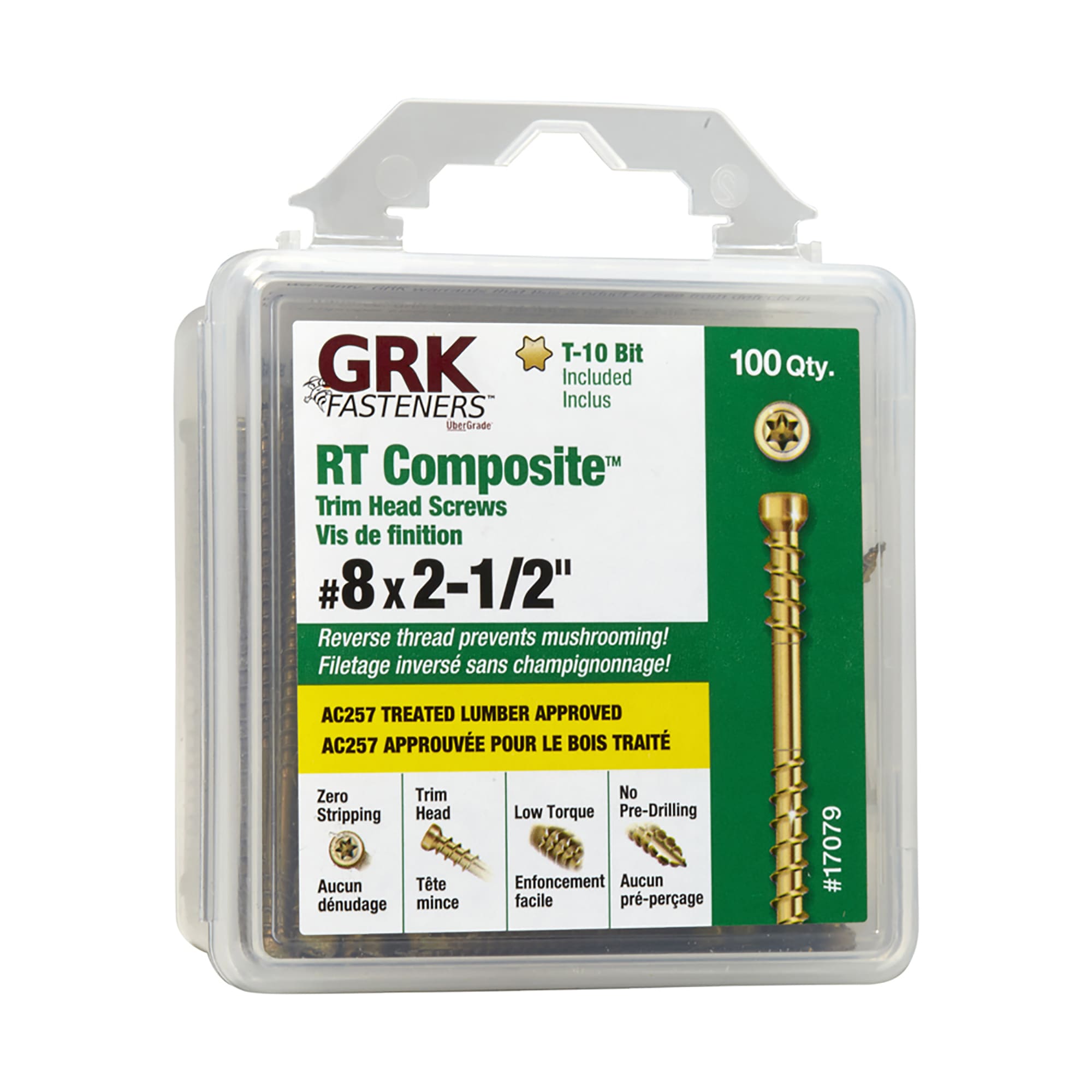 Deck Screw, Composite, #8 x 2-1/2", GRK, Reverse-Thread, Torx Trim Head, Climatek, 605/pkg Product Code: 16079 $99.99 Each Add to Cart