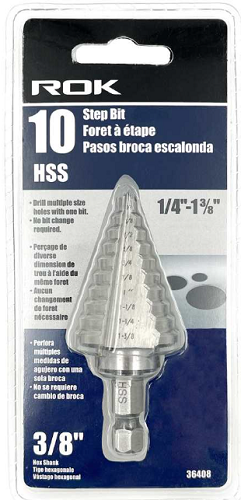 Features 10 steps from 1/4" - 1-3/8" (1/8" increments)