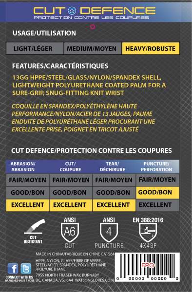 ANSI-rated 4 for puncture resistance, A6 for cut resistance