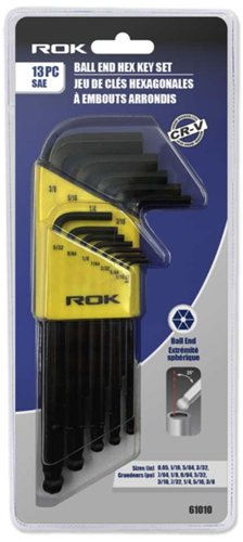 Extensive 13 piece set containing all common SAE sizes, packed in a convenient plastic index holder