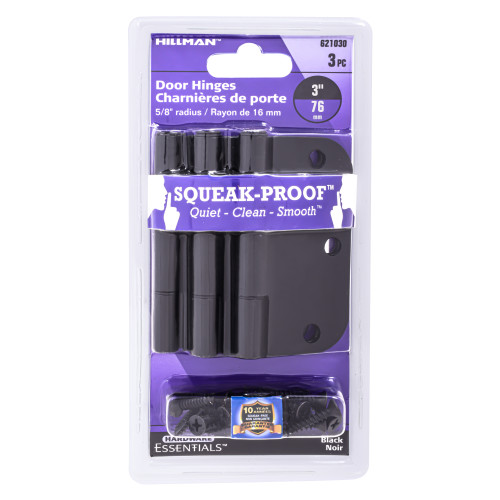 Door Hinge, 5/8" Radius, 3" x 3", Smooth & Silent, BLACK, 3 pieces/pkg, Hillman