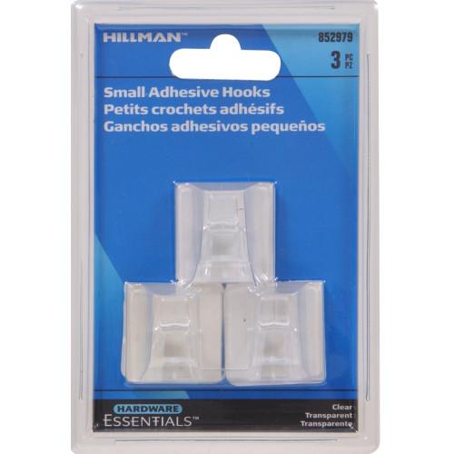 Plastic Hook, Self-Adhesive, Small, CLEAR, 3/pkg