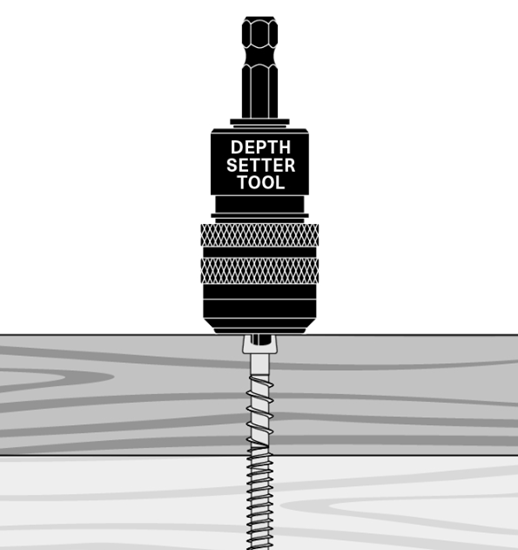 Locking rings allow for screw depth adjustment and secures desired setting for consistent screw installation