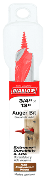 Diablo’s Auger Bit range provides maximum performance, extreme durability and superior life, even in nail-embedded wood applications.