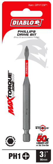 Diablo's driver bit range of Phillips bits delivers maximum performance, extreme durability and up to 50X longer life when installing and removing fasteners.