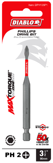 Diablo's driver bit range of Phillips bits delivers maximum performance, extreme durability and up to 50X longer life when installing and removing fasteners.