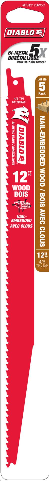 Reciprocating Saw Blade, Bi-Metal, 12"x 4/6 TPI (nail-embedded wood) bulk Product Code: DS1212BWC $7.99 Each Add to Cart