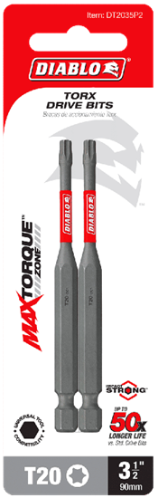 Diablo's driver bit range of Torx bits delivers maximum performance, extreme durability and up to 50X longer life when installing and removing fasteners.