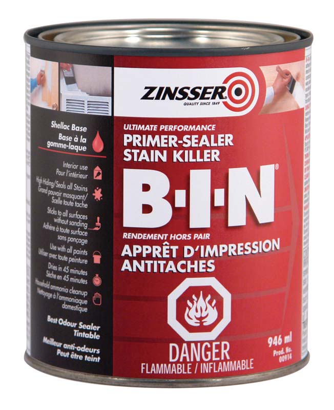 Looking for a “silver bullet” primer that covers everything unwanted? Use the one contractors keep in their vans: Zinsser B-I-N®Primer. As the original pigmented, shellac-based, stain-killing primer-sealer, nothing is better at permanently blocking stains, odours and wood knots. Great under all top coats.