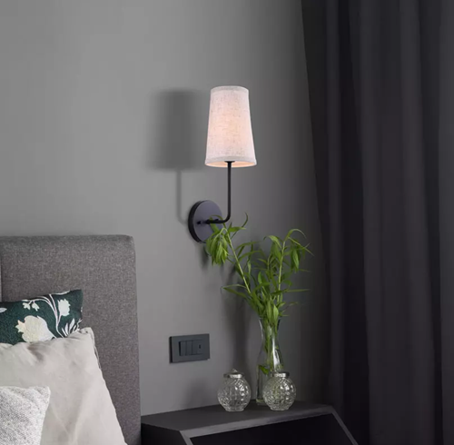 Light Fixture, Wall, BLACK w/Fabric Shade, Canarm OAKLY