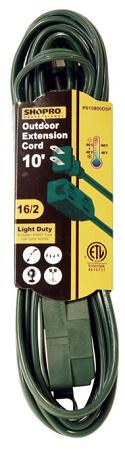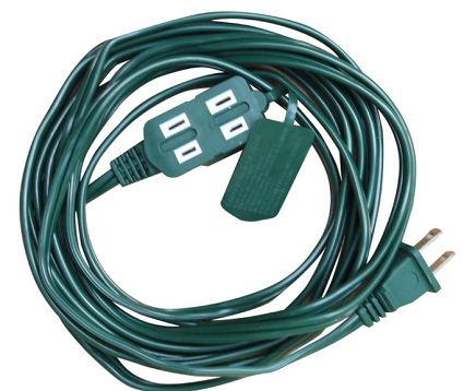 Extension Cord, Outdoor, 16/2 PXWT, 3 Meter, 2 Prong/3 Outlet, GREEN