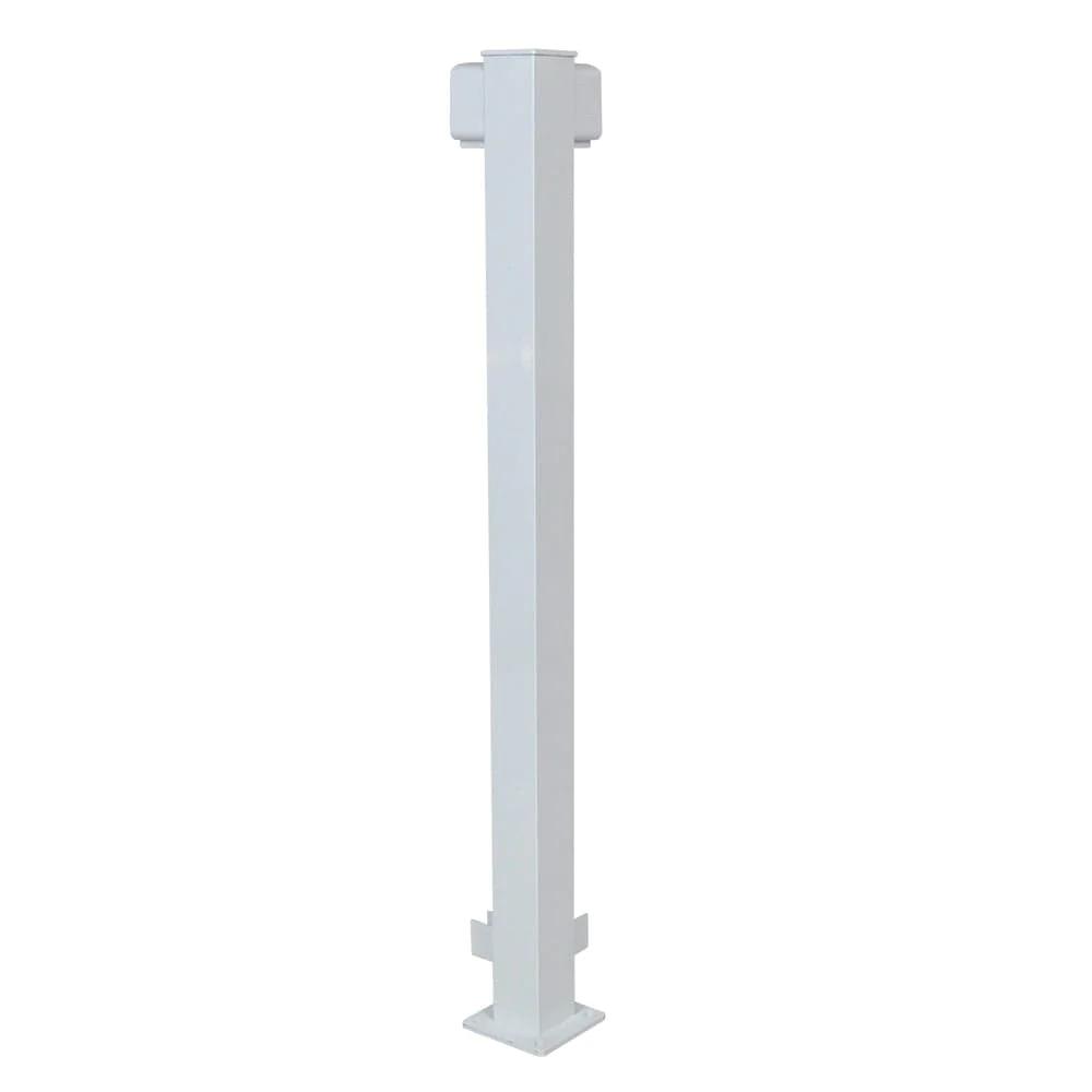 Post is 2-1/4" square and comes complete with post cap and welded brackets at 90 degrees to connect rails to post